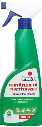 A Dymosept szórófejes fertőtlenítő tisztítószer egy kíméletlen hatékonyságú takarítószer, ami nem csak tisztít, hanem fertőtlenít is. A folyékony, baktériumölő fertőtlenítőszer bármilyen mosható felületen bevethető, amelyre úgy érzi, ráférne egy alapos fertőtlenítő takarítás. Ilyenek lehetnek például a wc, kád, konyhai és fürdőszobai csapok, kilincsek, valamint villanykapcsolók.