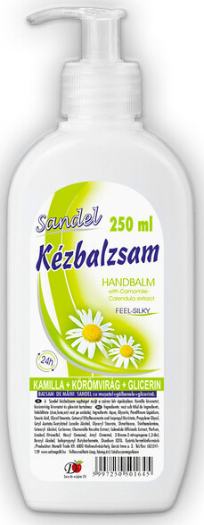 A Sandel kézbalzsam segítséget nyújt a száraz bőr ápolásában. Kamilla kivonatot, körömvirág kivonatot és glicerint tartalmaz. Kiszerelés: 250 ml/pumpás flakonban.